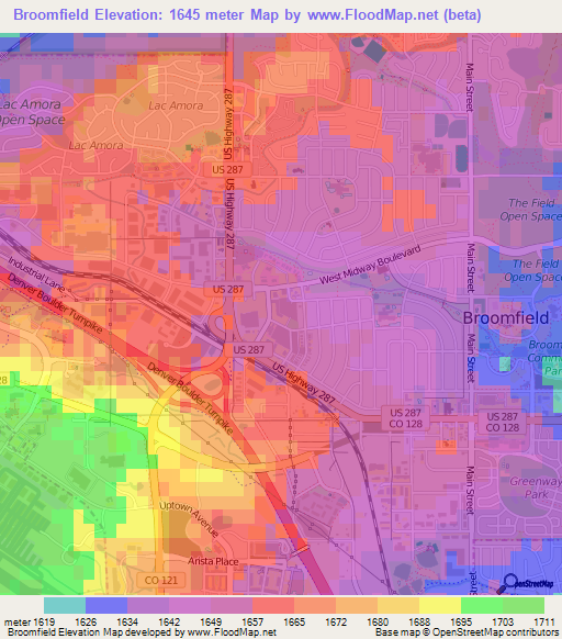 Elevation Of Broomfield Us Elevation Map Topography Contour